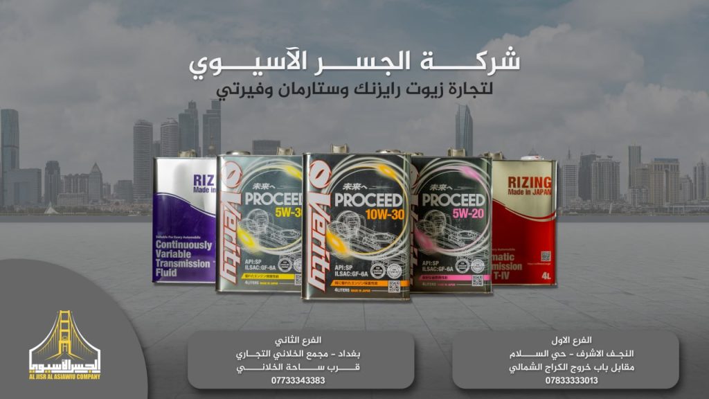نحن شركة متخصصة في توريد وتوزيع زيوت المحركات عالية الجودة من اليابان ومن كبرى الشركات العالمية الرائدة في مجال مواد التزييت. تأسست شركة الجسر الآسيوي عام 2023 في العراق كشركة رائدة في مجال التجارة العامة والاستيراد والتصدير. نركز بشكل أساسي على استيراد زيوت المحركات عالية الجودة من مناشئ عالمية مرموقة مثل اليابان وهولندا. تعتمد شركتنا على شراكات مع علامات عالمية معتمدة ومعروفة في الابتكار والجودة في تصنيع زيوت المحركات نوفّر لعملائنا منتجات موثوقة مُصمّمة وفق أعلى المواصفات الدولية لضمان أداء أفضل للمحرك، حماية أطول، واستهلاك وقود أقل.